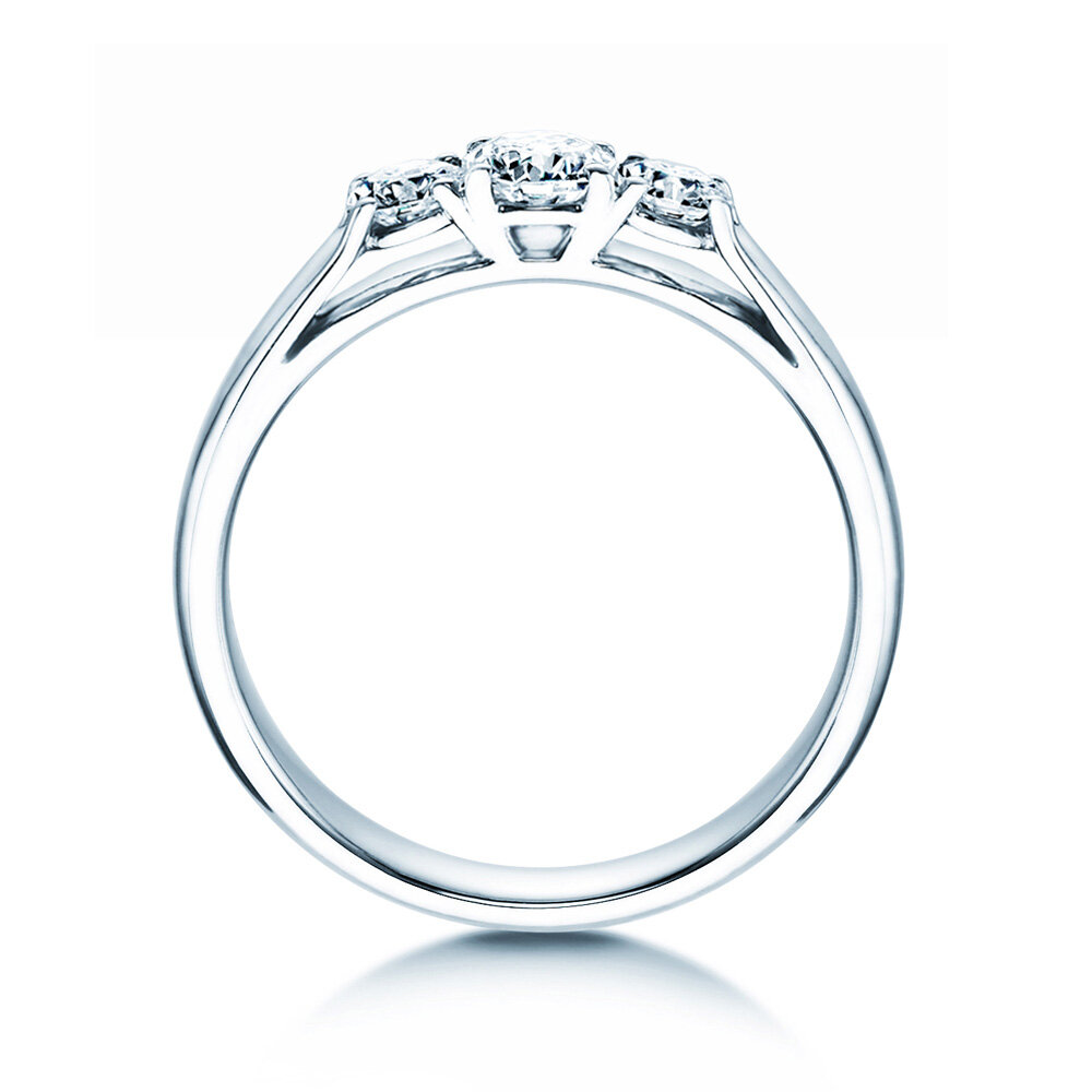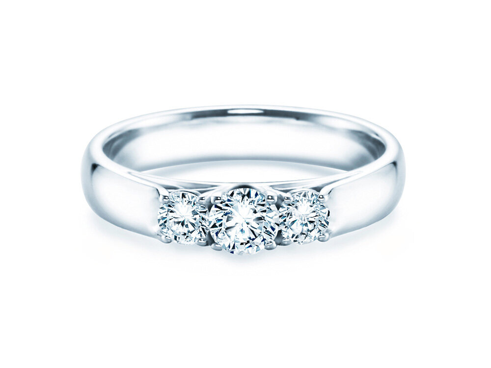 La realidad de una relación se desarrolla a partir de las expectativas pasadas, presentes y futuras del amor. Los tres diamantes simbolizan estos tres niveles de tiempo y se combinan en el modelo 3 Stones para crear una prueba de amor romántica y llena de significado.