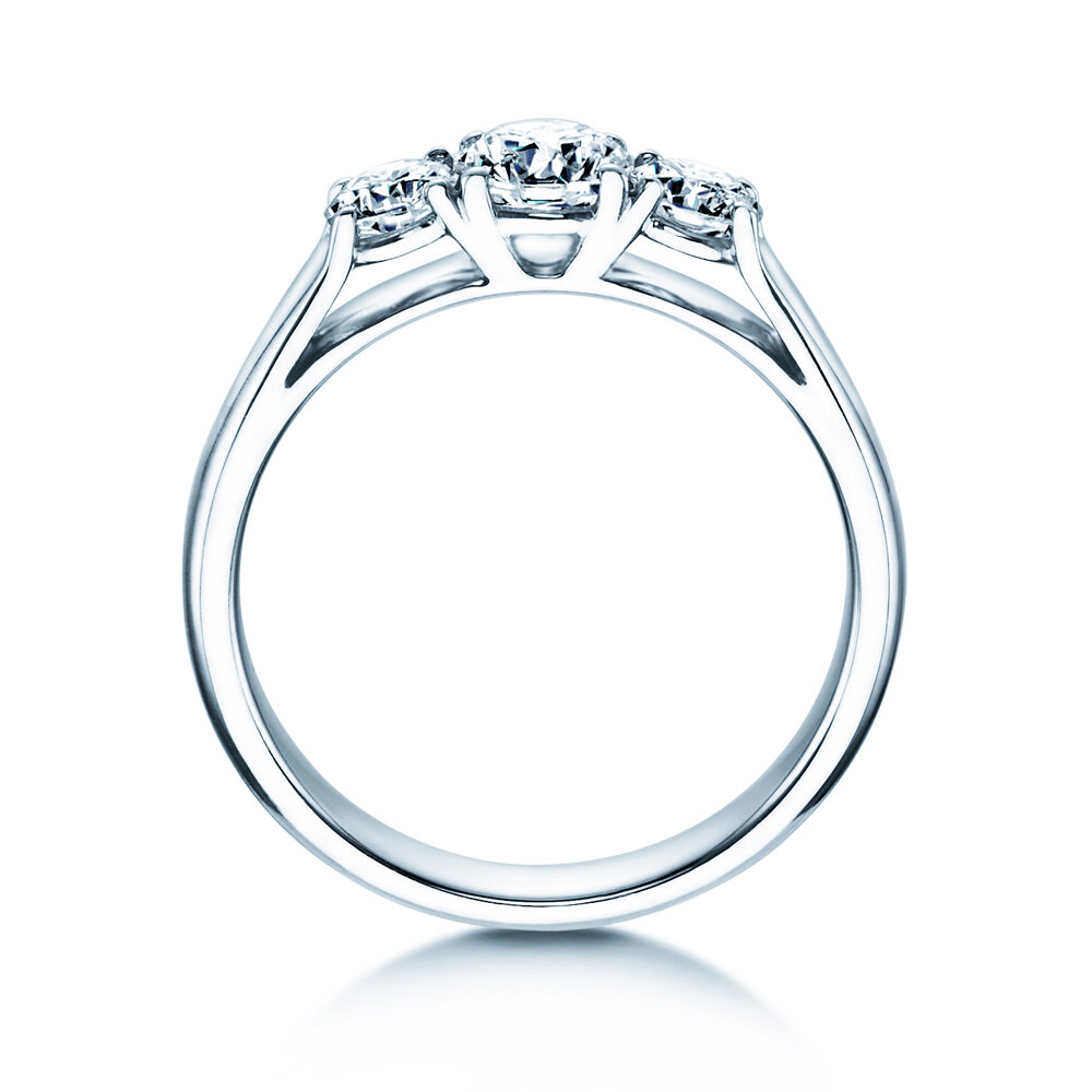 La realidad de una relación se desarrolla a partir de las expectativas pasadas, presentes y futuras del amor. Los tres diamantes simbolizan estos tres niveles de tiempo y se combinan en el modelo 3 Stones para crear una prueba de amor romántica y llena de significado.