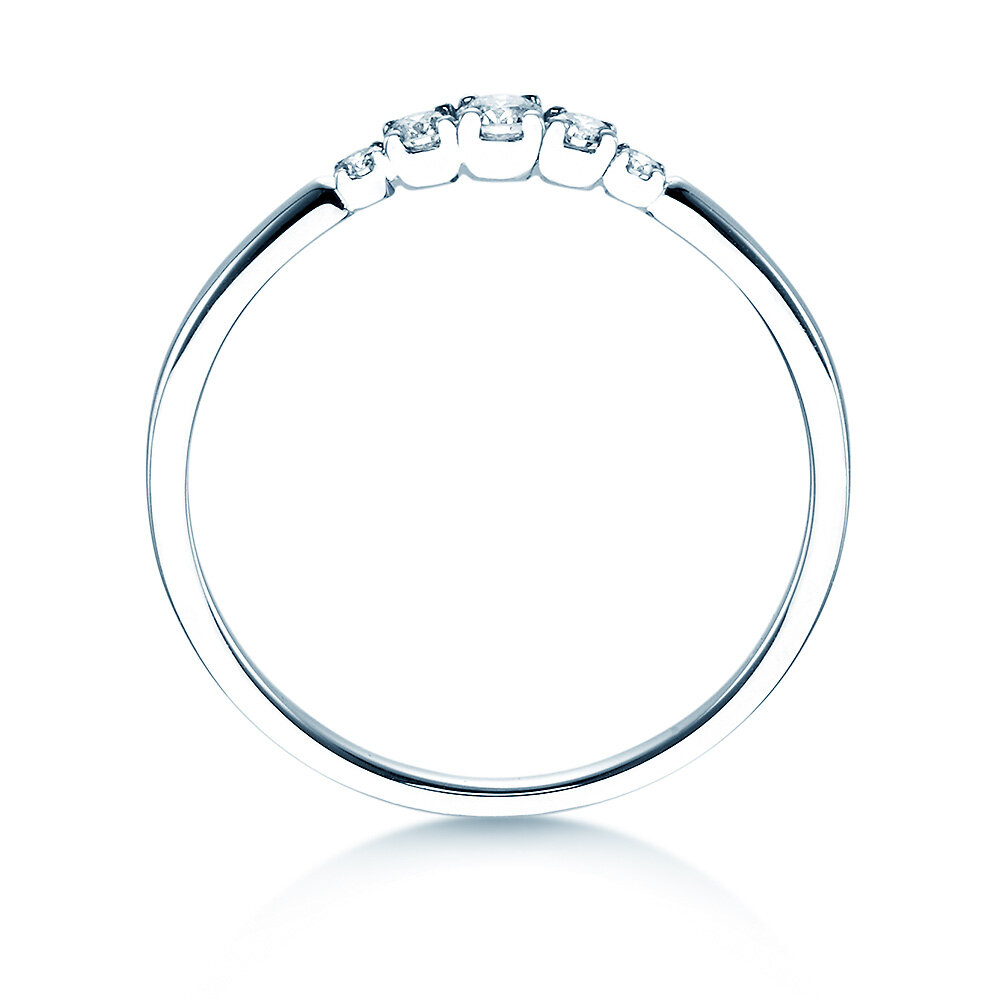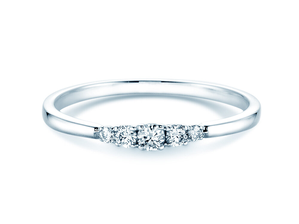 Un anillo y una promesa. El delicado raíl del 5 Diamonds está engastado con cinco diamantes de gran brillo. La disposición de las gemas hace que este anillo de oro blanco luzca armonioso y equilibrado. Una auténtica obra de arte. Ideal para mujeres que aman la elegancia y el diseño atemporal. Nuestra recomendación: el 5 Diamonds en oro blanco o platino exclusivo.