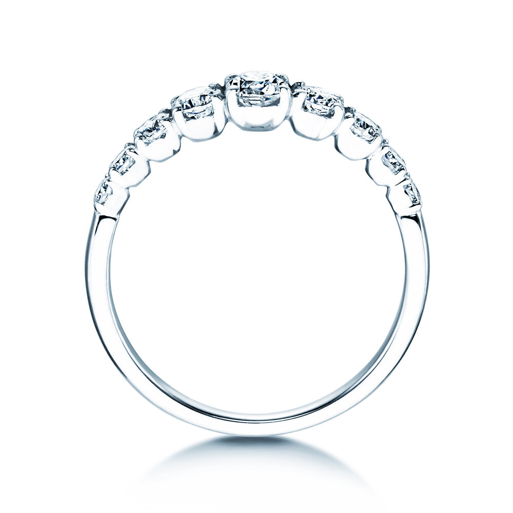 El modelo 9 Diamonds, muy equilibrado y elegante, está engastado con nueve diamantes de diferentes tamaños, que aumentan de tamaño hacia el centro superior del riel del anillo. Una obra de arte en cada mano, fácil de combinar con otras joyas, siempre moderna y atemporal.