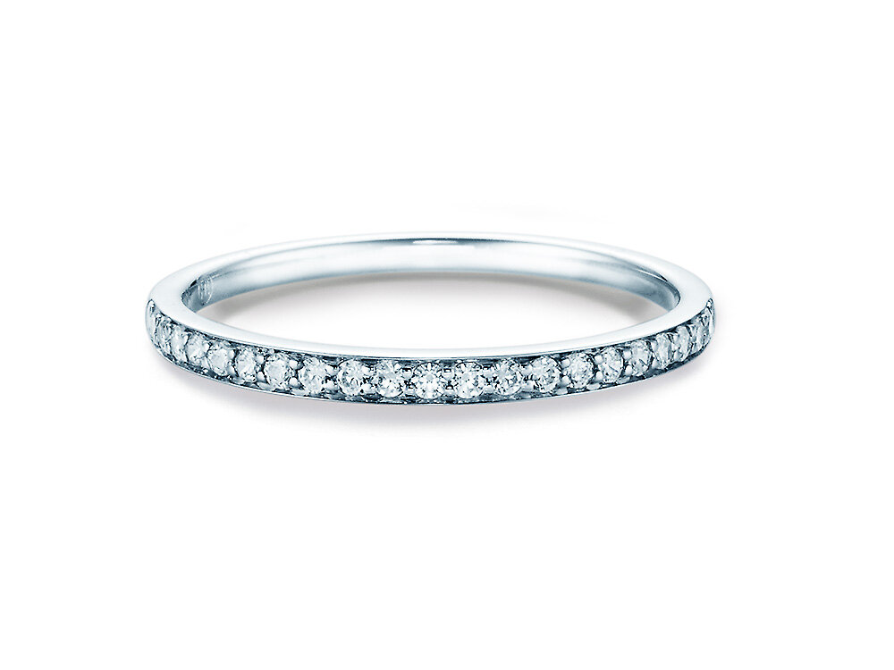 Los anillos Eternity de oro blanco se caracterizan por su diseño especial, que hace destacar el carácter único de los diamantes y tienen un look limpio e increíblemente elegante con su denso engaste de piedras.