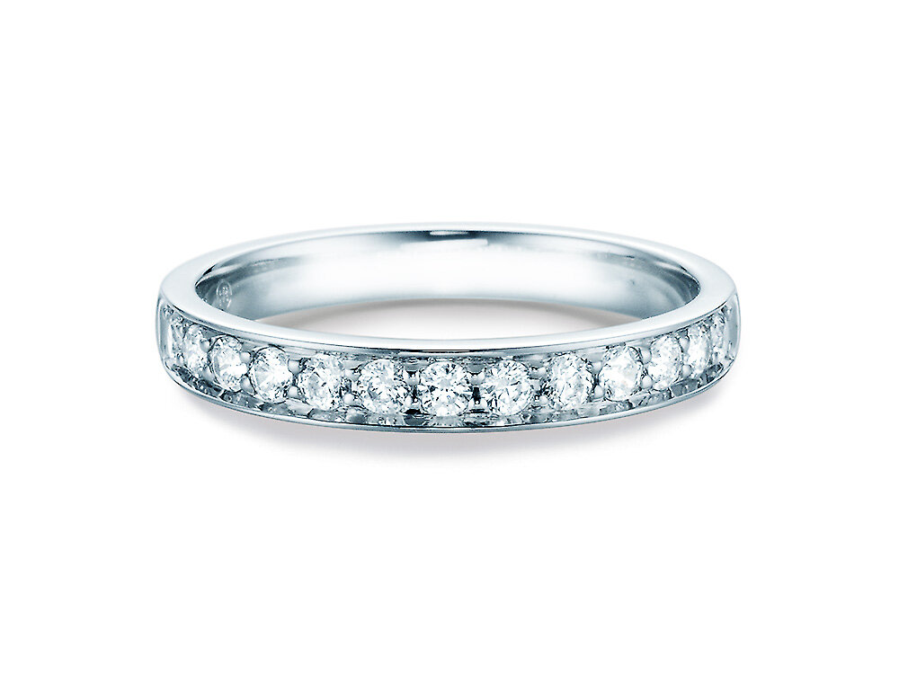 Los anillos Eternity de oro blanco se caracterizan por su diseño especial, que hace destacar el carácter único de los diamantes y tienen un look limpio e increíblemente elegante con su denso engaste de piedras.