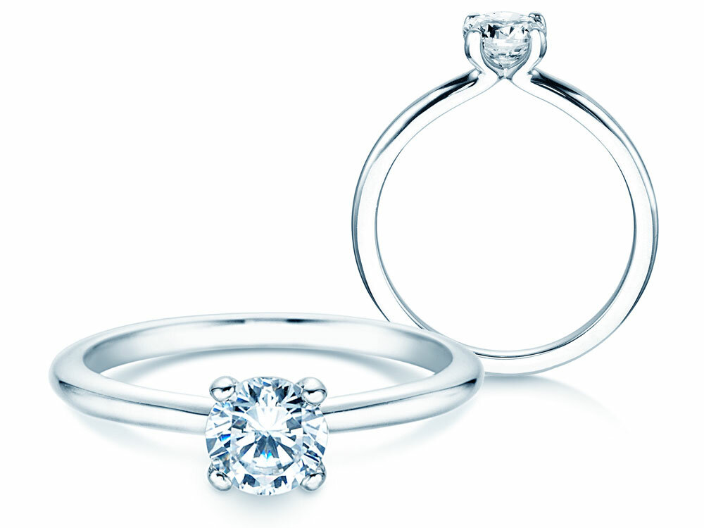 El nuevo anillo de compromiso Classic 4 combina todas las características de un anillo clásico de plata: su raíl tiene una estructura de filigrana, ni muy ancha ni muy estrecha, y se ajusta a la perfección al tamaño del diamante del anillo.