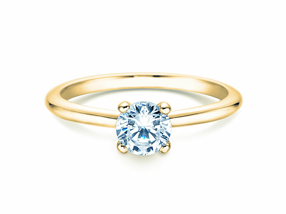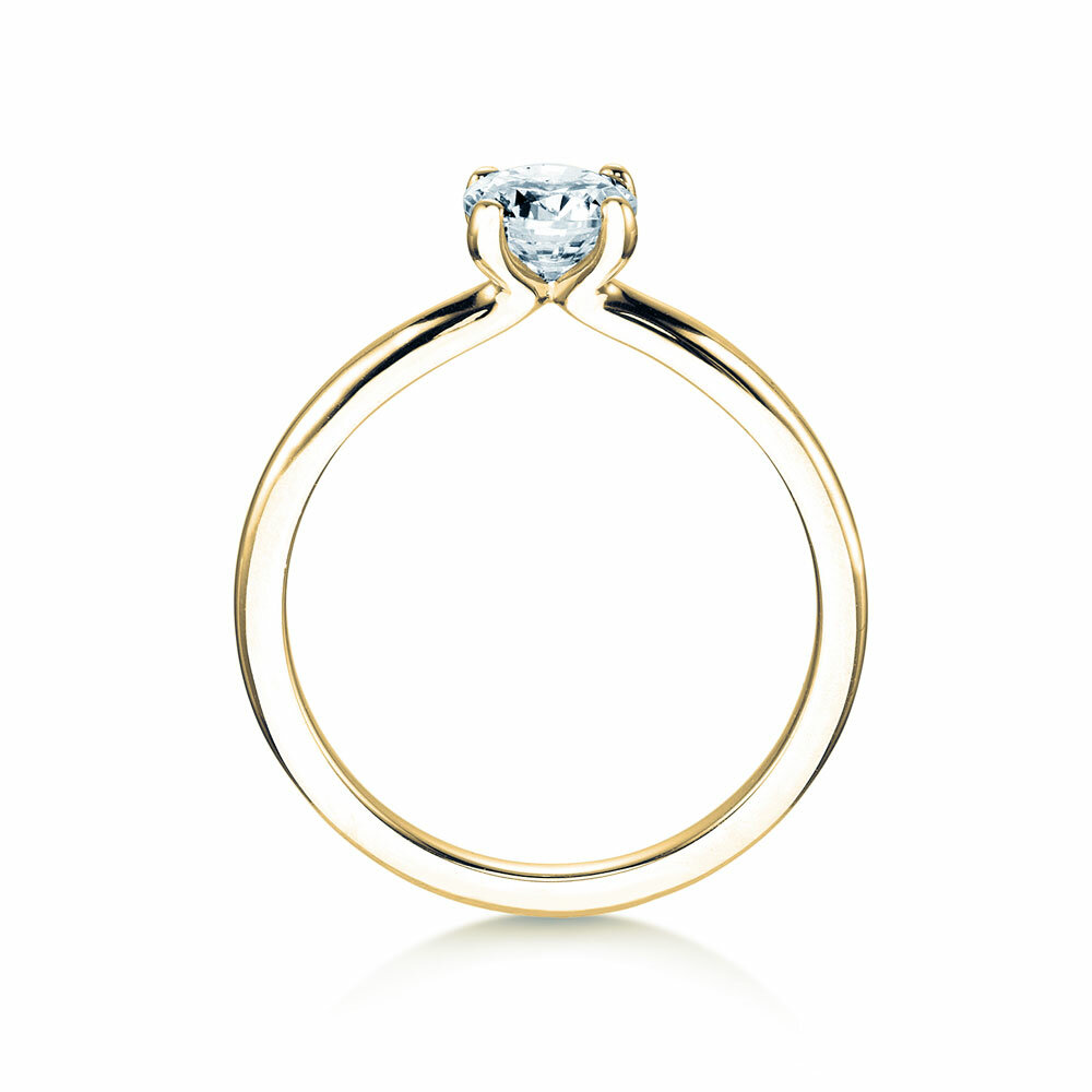 El engarce está concebido de tal manera que el anillo pueda ser llevado sin problema junto con el anillo de boda. Así, el engarce se ha mantenido especialmente plano, para que la piedra se integre de forma armoniosa en la composición.