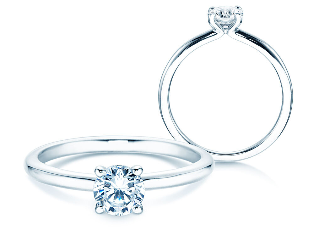 El nuevo anillo de compromiso Classic 4 combina todas las características de un anillo clásico de plata: su raíl tiene una estructura de filigrana, ni muy ancha ni muy estrecha, y se ajusta a la perfección al tamaño del diamante del anillo.