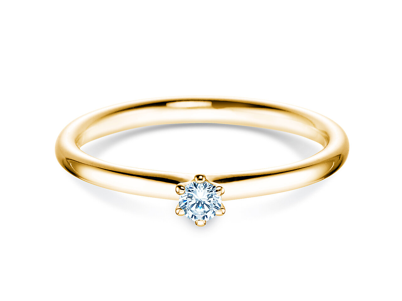 Se ha decidido por el anillo solitario Classic de oro amarillo con diamante en un engarce de marco con seis garras.