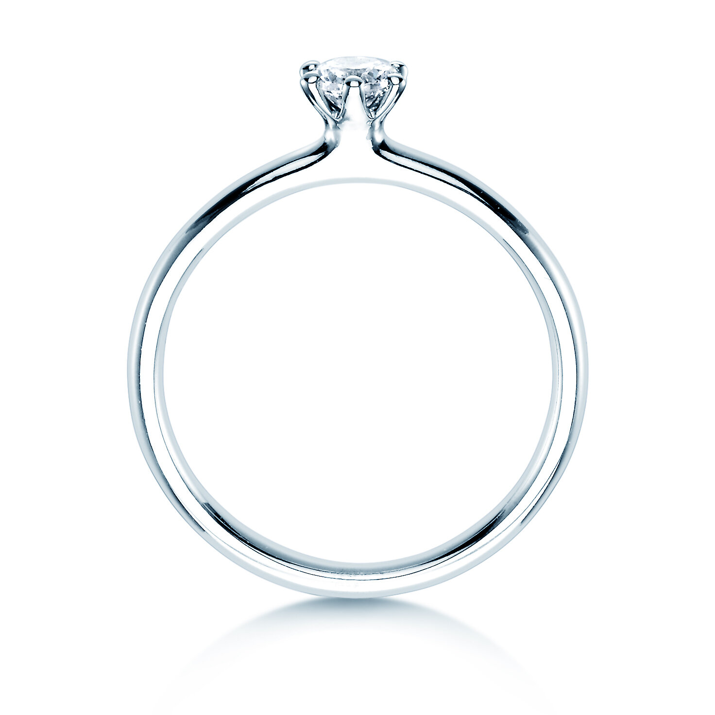 Se ha decidido por el anillo solitario Classic de oro blanco con diamante en un engarce de marco con seis garras.