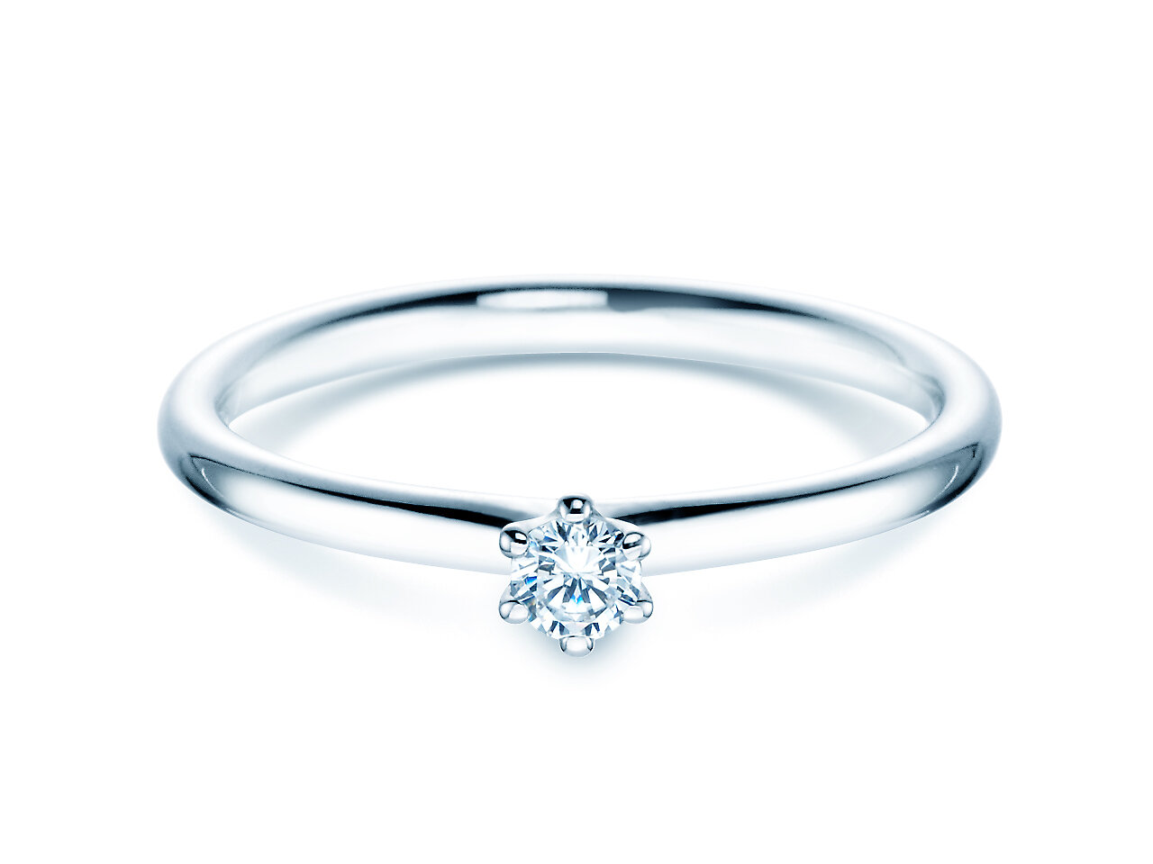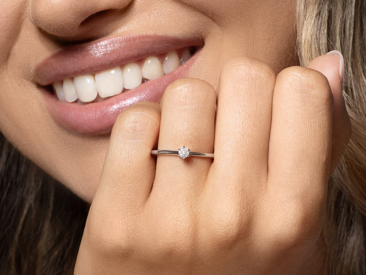 Se ha decidido por el anillo solitario Classic de oro blanco con diamante en un engarce de marco con seis garras.