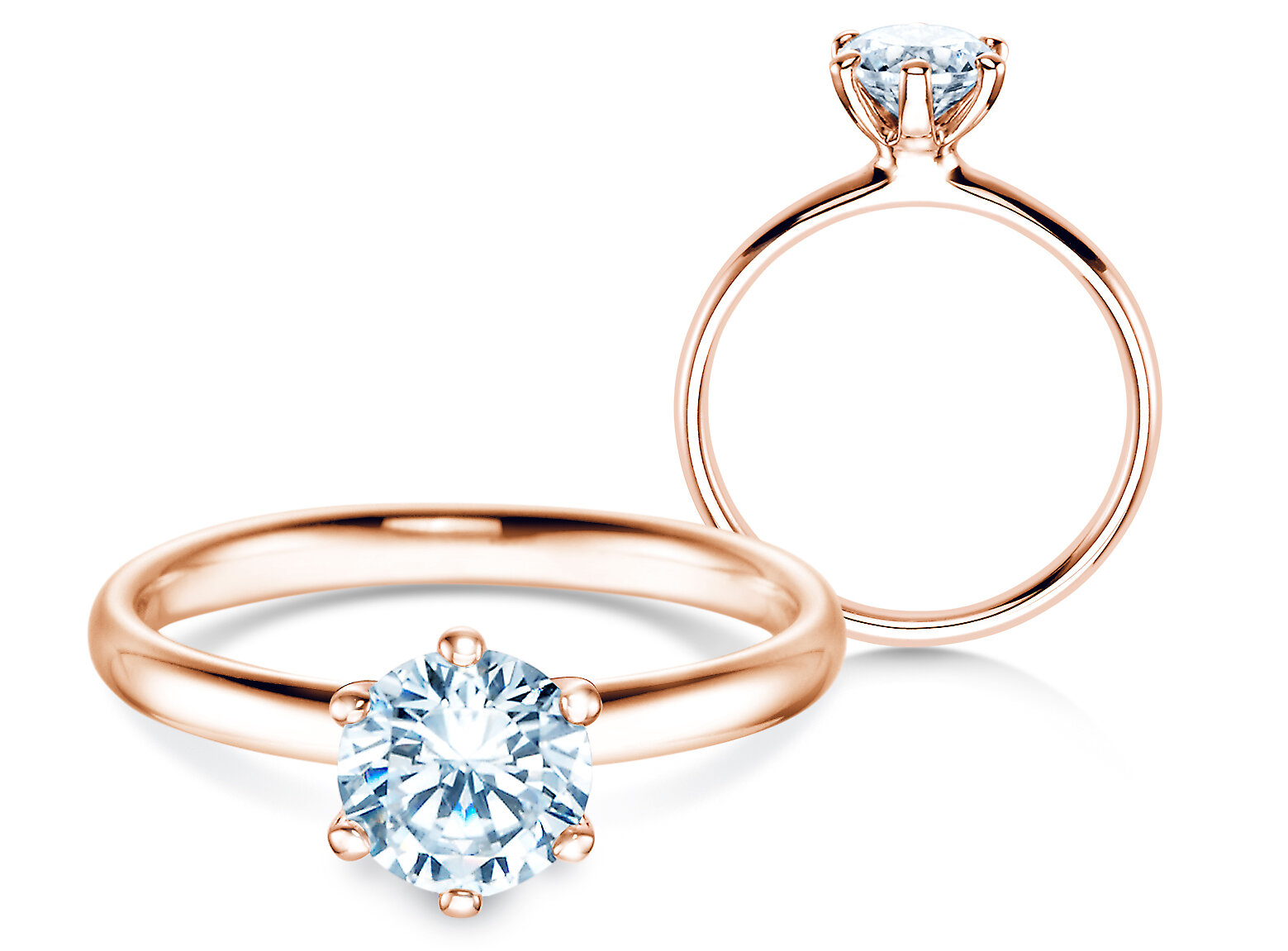 Se ha decidido por el anillo solitario Classic de oro rosa con diamante en un engarce de marco con seis garras.