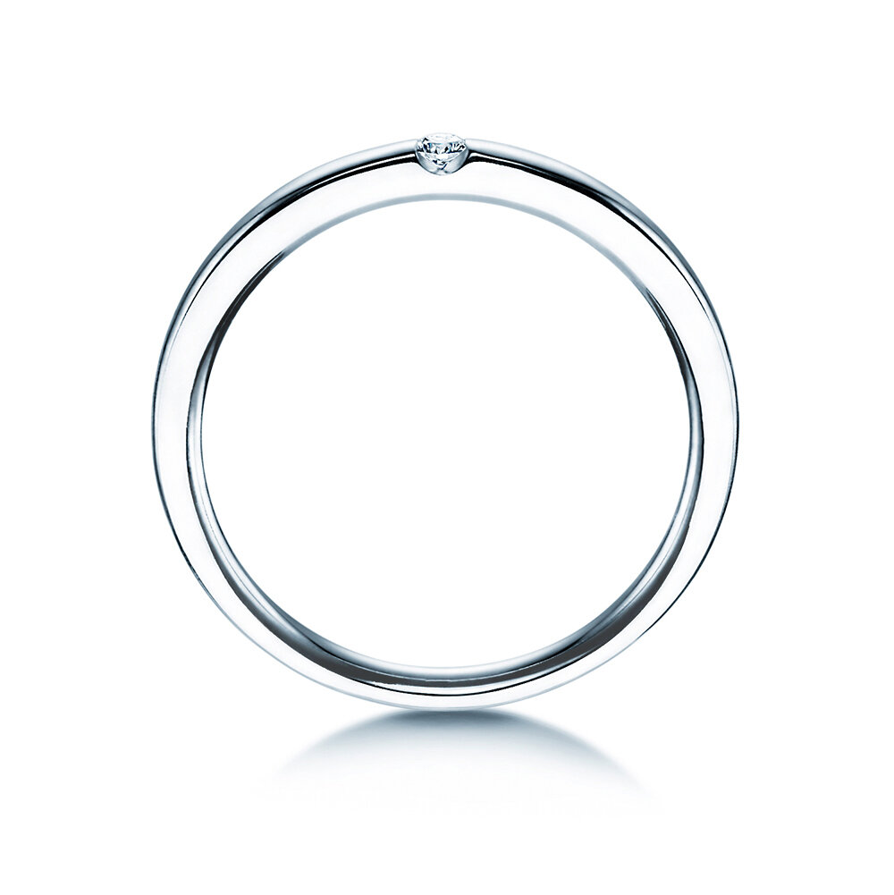 El moderno anillo de tensión Destiny combina dos ventajas decisivas: el diamante, de un brillo extraordinario, se enmarca de forma segura por el engarce y recibe una gran cantidad de luz por los lados, que quedan abiertos. Esto permite que el diamante muestre todo su potencial de brillo. Las líneas claras y perfectamente equilibradas del raíl del anillo redondean elegantemente el diseño. En función de su presupuesto, en el menú principal puede seleccionar un diamante de menor o mayor tamaño.
