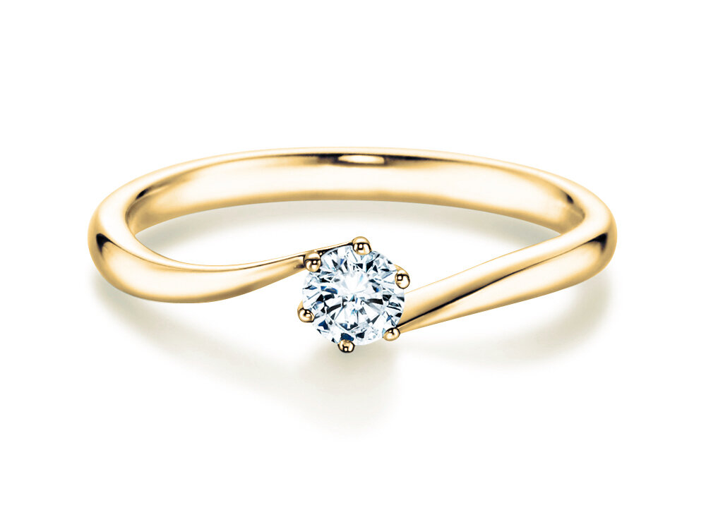 Un anillo solitario con un twist especial: el anillo de compromiso Devotion de oro amarillo combina armónicamente un engarce de garras y un anillo de tensión. El raíl del anillo se ajusta suave y elegantemente al diamante, que está engastado con 6 garras. Descubra un anillo de compromiso con una fabricación excelente, lleno de romanticismo para todos aquellos que aman la elegancia de la vida en pareja! En función de su presupuesto, en el menú principal puede seleccionar un diamante de menor o mayor tamaño.