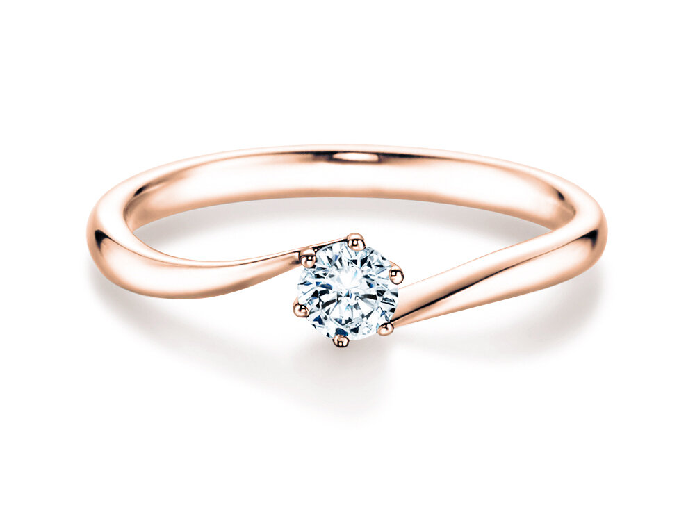 Un anillo solitario con un twist especial: el anillo de compromiso Devotion de oro rosa combina armónicamente un engarce de garras y un anillo de tensión. El raíl del anillo se ajusta suave y elegantemente al diamante, que está engastado con 6 garras. Descubra un anillo de compromiso con una fabricación excelente, lleno de romanticismo para todos aquellos que aman la elegancia de la vida en pareja! En función de su presupuesto, en el menú principal puede seleccionar un diamante de menor o mayor tamaño.