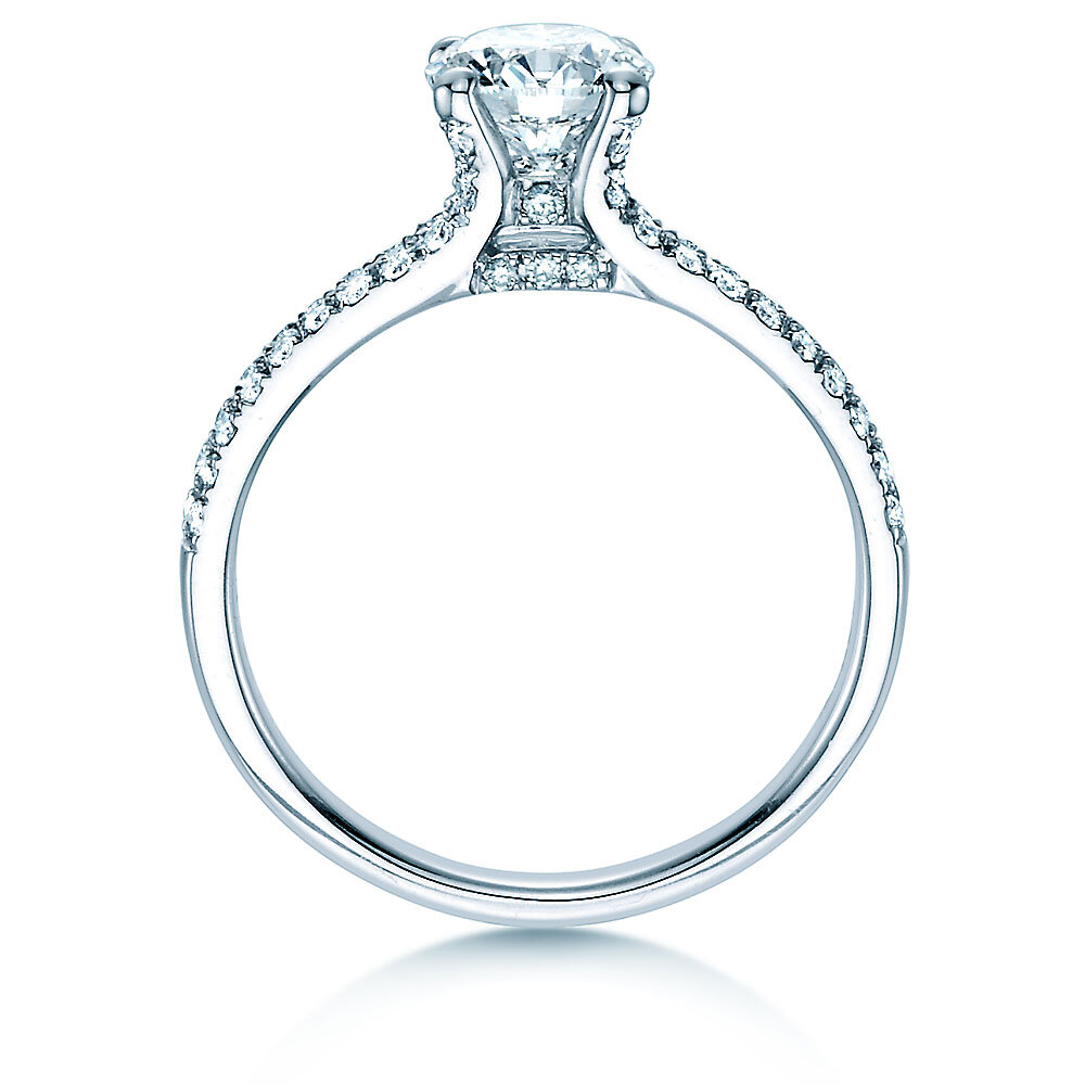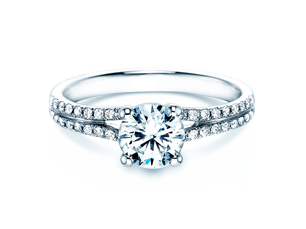 "Son los pequeños detalles los que hacen que este modelo sea tan bonito. Por ejemplo, los cuatro diamantes engastados bajo la piedra principal, que pueden verse claramente en la segunda imagen en la página de detalles del producto. Combinados con el riel del anillo, de oro blanco y que está engastado con diamantes en pavé hasta el engaste, el resultado es un anillo de compromiso de una belleza impresionante."