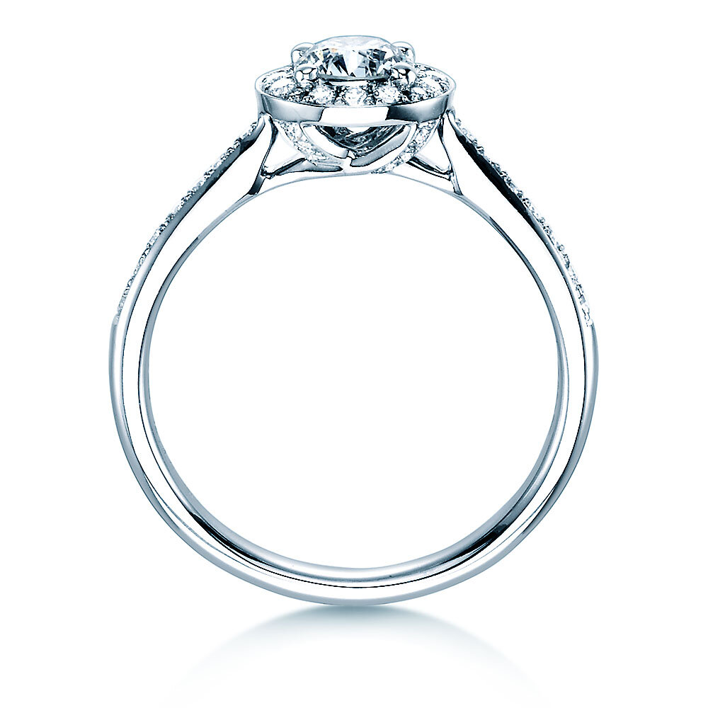El anillo clásico Halo Classic, el hermano mayor del modelo exitoso Halo Petite, desploma con su halo que destaca la piedra central. Un anillo impresionante con un centelleo para cortar el aliento.