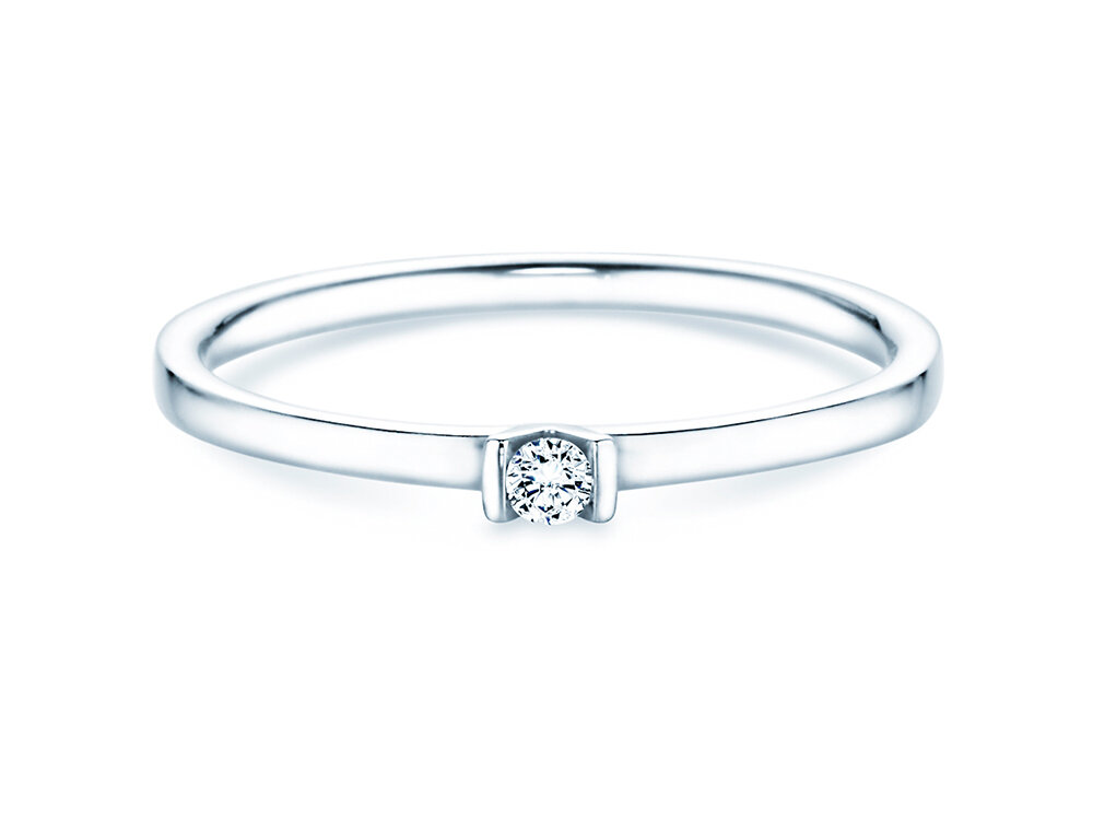 Los anillos de compromiso Love son las últimas novedades en nuestra gama y destacan por el refinado engaste del diamante. El diamante está fijado a ambos lados por un precioso puentecillo de oro blanco. La seria está limitada a dos tamaños de diamantes, 0,04 y 0,07 quilates.