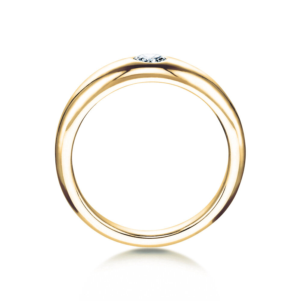 El raíl redondeado se acentúa por un diamante integrado de forma discreta, lo que convierte el anillo de compromiso Promise en uno de los puntos fuertes de nuestra colección. Su resplandeciente diamante queda protegido por el raíl del anillo. Promise es el modelo ideal para ocasiones especiales y también puede llevarse perfectamente en el día a día. En el menú puede seleccionar un diamante de menor o mayor tamaño en función de su presupuesto.