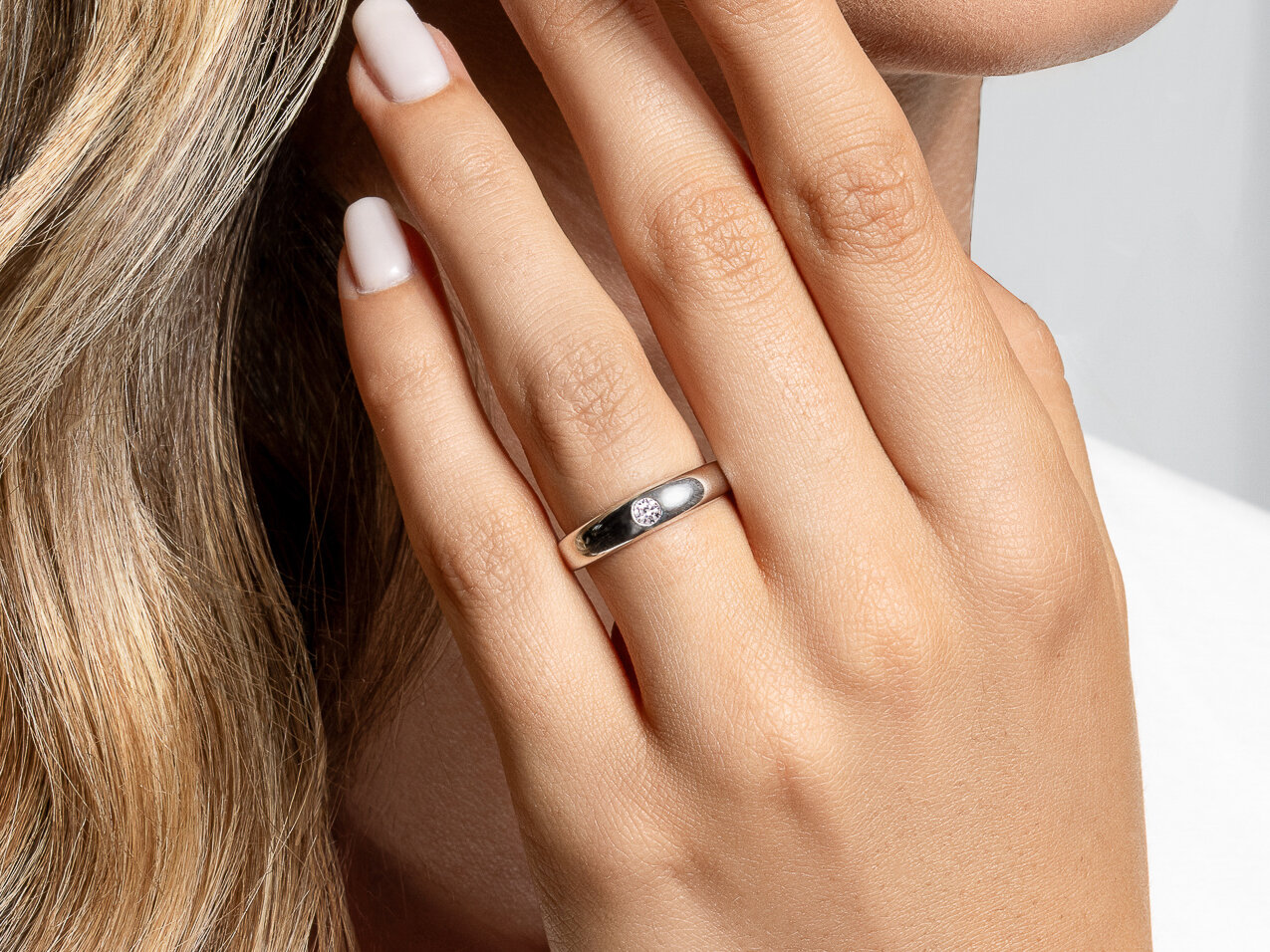 El raíl redondeado se acentúa por un diamante integrado de forma discreta, lo que convierte el anillo de compromiso Promise en uno de los puntos fuertes de nuestra colección. Su resplandeciente diamante queda protegido por el raíl del anillo. Promise es el modelo ideal para ocasiones especiales y también puede llevarse perfectamente en el día a día. En el menú puede seleccionar un diamante de menor o mayor tamaño en función de su presupuesto.