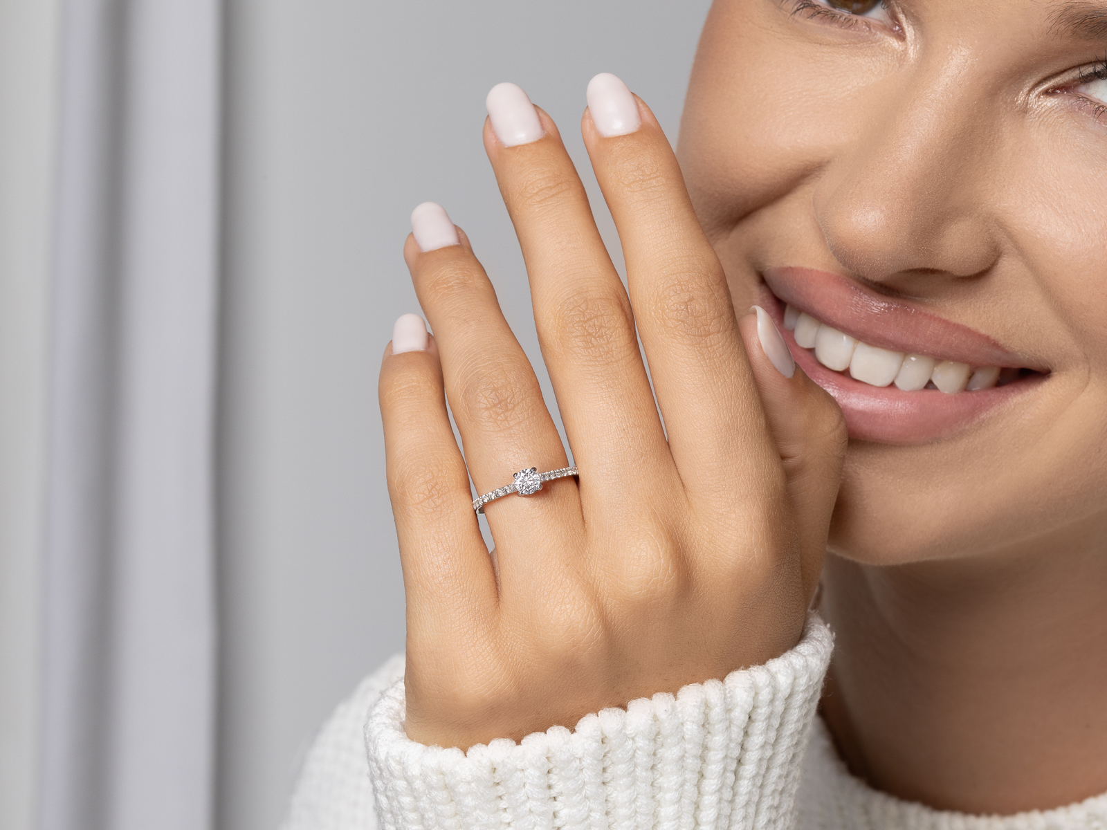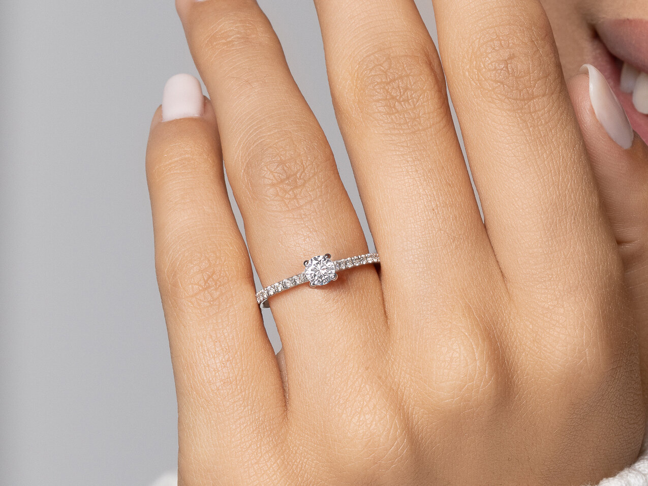 Disponibles en cinco diferentes tamaños de diamante. El riel de filigrana engastado con diamantes se ajusta a las proporciones de la piedra central. Ni demasiado fino, ni demasiado ancho: Pure Diamond queda increíblemente elegante en la mano. Esta moderna interpretación de un clásico satisface los deseos de las muejres de hoy.