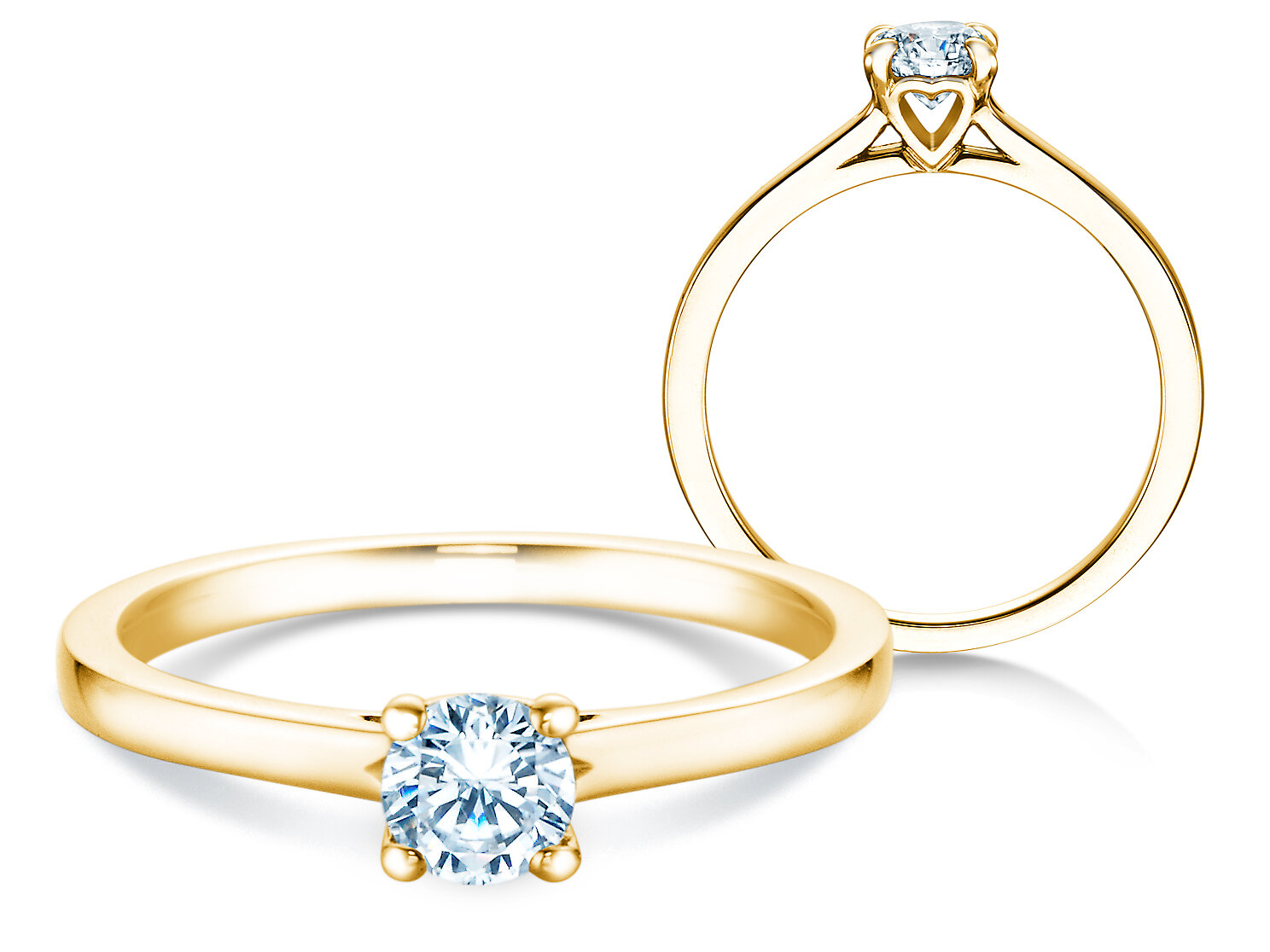 Anillo de compromiso Romance con un diamante auténtico y un engarce de 4 garras. Lo más destacado del anillo solitario Romance es el romántico corazón integrado en el engaste.