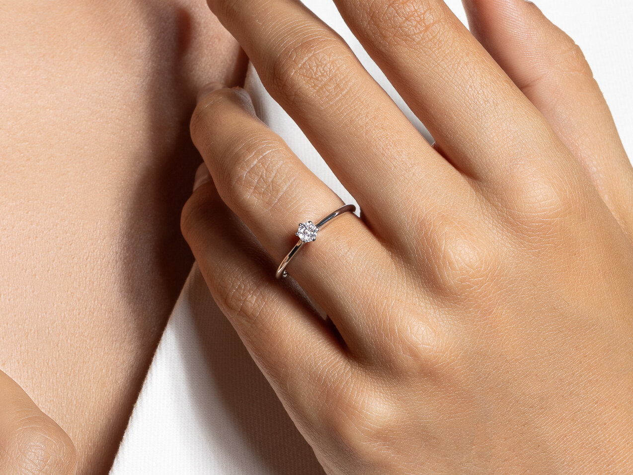 El anillo de compromiso Royal se ha ganado de manera silenciosa un lugar fijo en nuestros corazones y se ha convertido en uno de nuestros modelos favoritos. A este anillo solo le vemos ventajas: la estructura es discreta y de filigrana, puede combinarse a la perfección con una alianza, hace destacar el diamante de una manera excelente y el modelo tiene una apariencia extremadamente elegante en todos los tamaños de diamante. En resumen: si quiere apostar por lo seguro, compre este anillo.