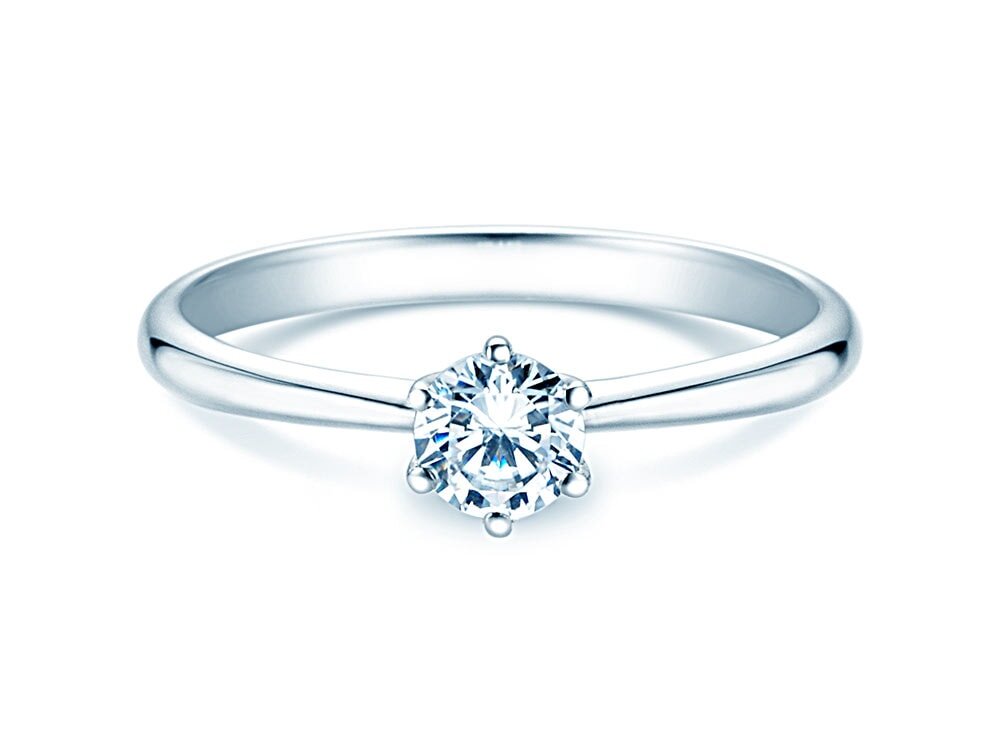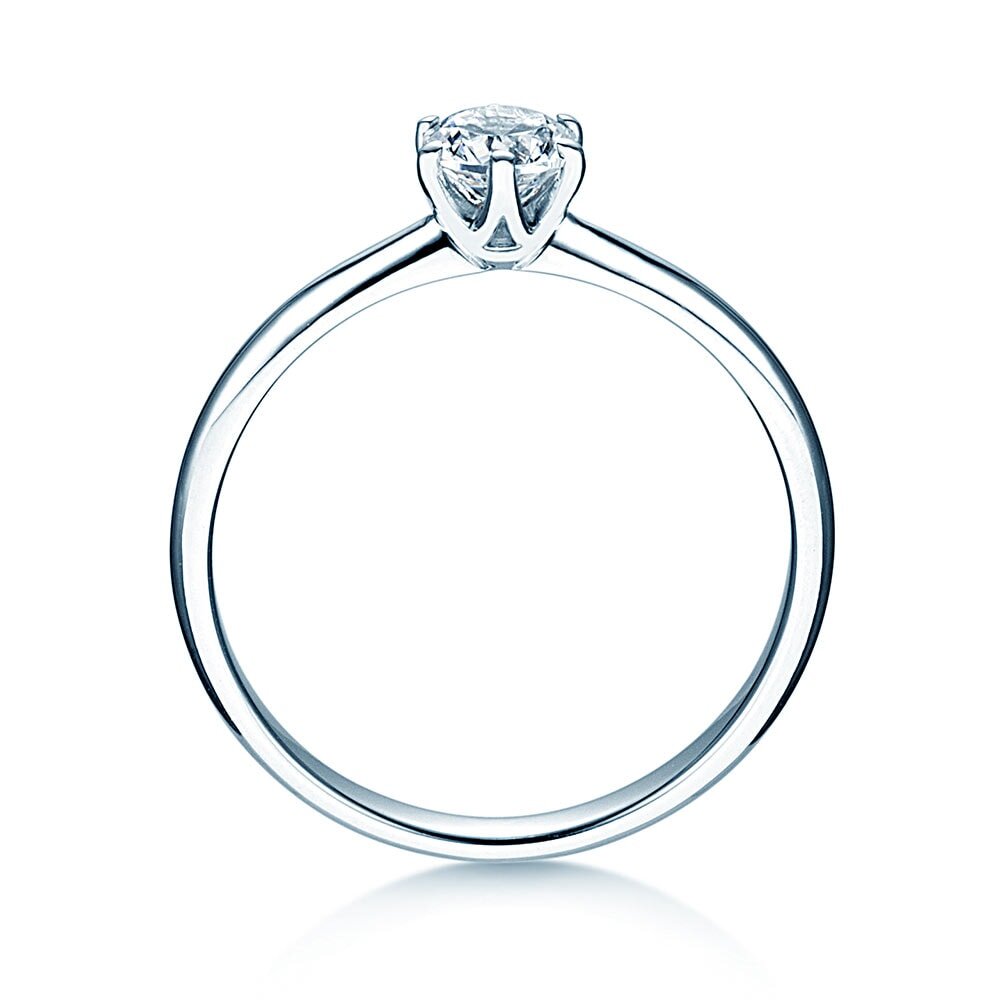 El raíl clásico del anillo de compromiso Spirit se estrecha hacia el engarce bajo. El diamante está engarzado a una altura sobre el raíl, lo que permite que el diamante produzca una gran cantidad de luz y reflejos. Además, un interior ligeramente convexo hace que sea muy cómodo de llevar. Spirit es un anillo de compromiso equilibrado y elegante y una oda al trabajo artesanal.
