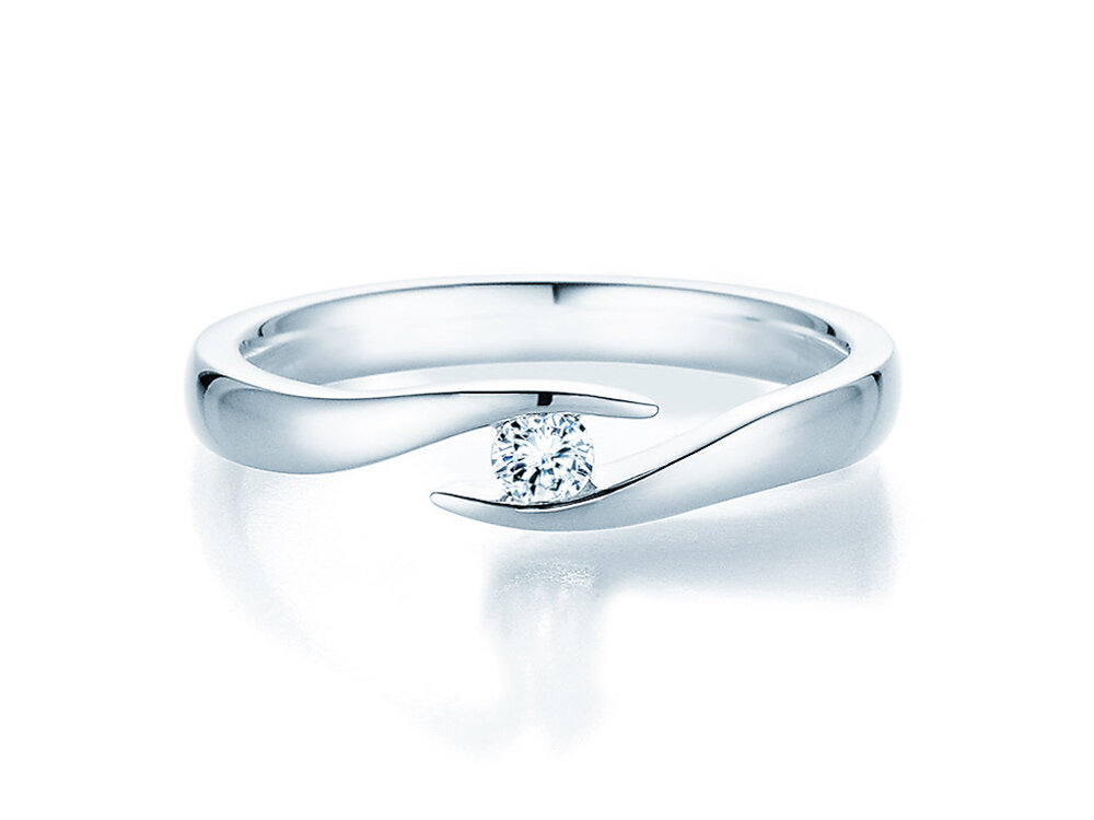 Elegancia, refinamiento y un diseño único: el anillo de tensión Twist envuelve su diamante como el tesoro precioso que es. En este modelo, le recomendamos la versión de oro blanco, el metal precioso clásico para los anillos de compromiso. Compre un diamante que se ajuste a su presupuesto al elegir un diamante de mayor o menor tamaño.