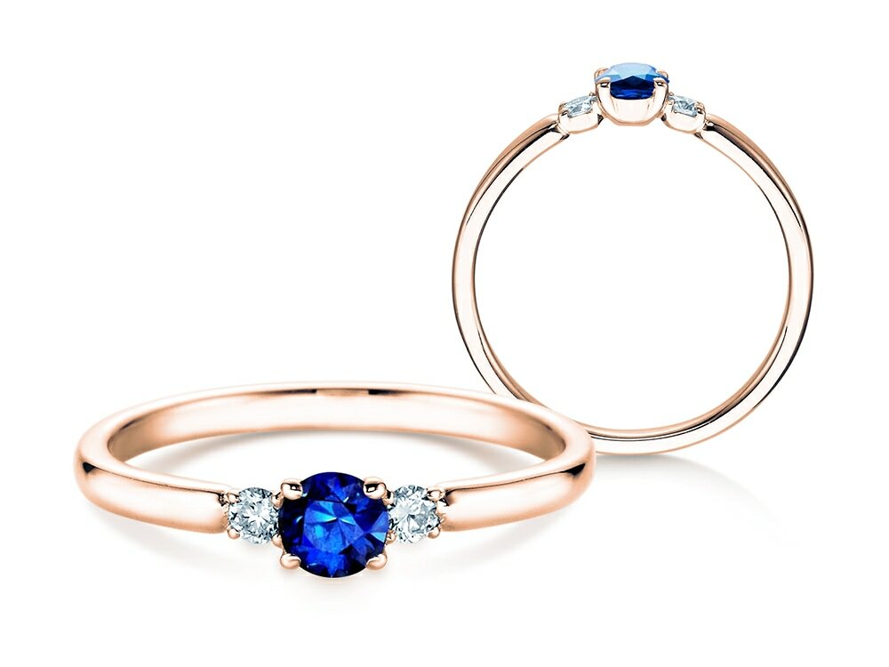El raíl de filigrana del anillo desemboca en un engarce discreto con 2 diamantes, símbolo del pasado y el futuro. Por su parte, el resplandeciente zafiro representa el presente. Un anillo de compromiso con tres piedras brillantes que refleja la historia irrepetible de su amor.
