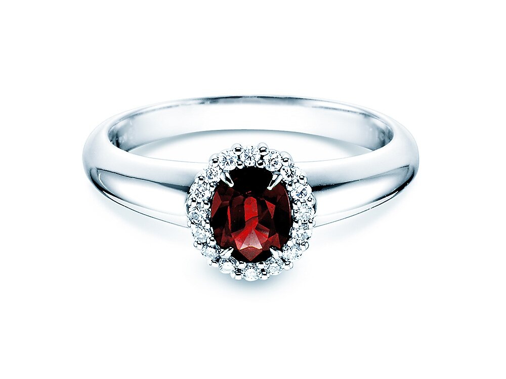 14K oro blanco con rubí 0,60ct y diamantes 0,12ct