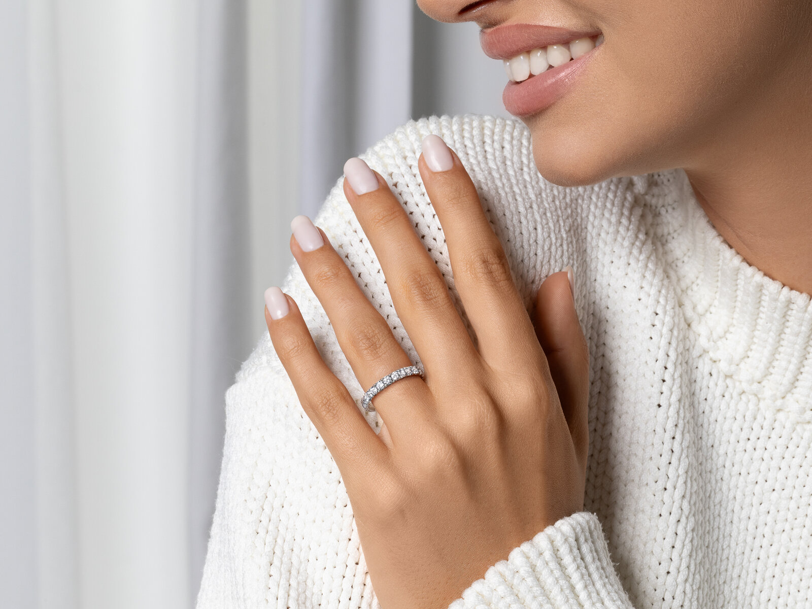 Sencillamente elegante: el anillo Dusk crea su luminosidad a partir del diseño minimalista. La montura moderna entusiasma y los diamantes brillan al dedo de su portadora. Tan simple puede ser. Le aconsejamos los modelos con 0.25, 0.35 y 0.55 ct.