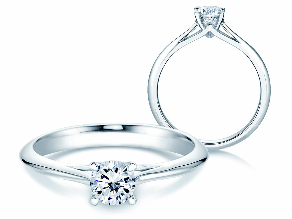 El anillo solitario Heaven 4 en oro blanco o Heaven 4 en platino con un diamante a partir de 0.15 ct.